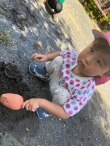 公園に着くと、持って行ったお砂道具でお砂を掘り堀り⭐