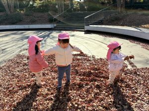 お庭のステージに行くと、落ち葉溜まりができていました🍂