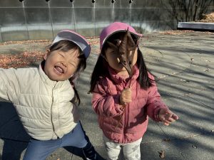 両手にどんぐりと鈴のマラカスを持ってシャンシャン🎶