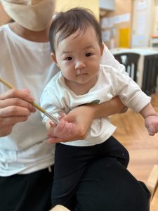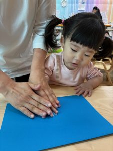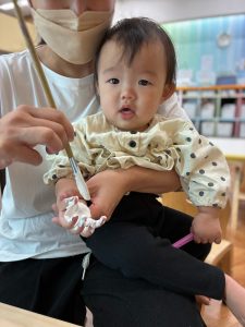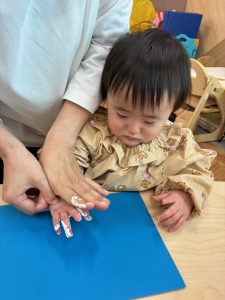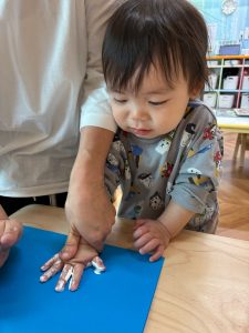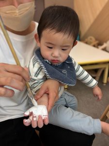右手に絵の具をつけると、キャッキャと声をあげながら楽しんでいたお友達🖌️