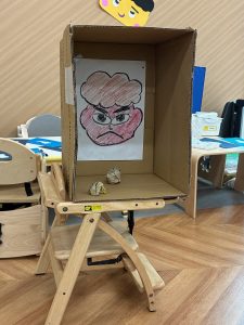 「おにはそとー!ふくはうちー!」と鬼の絵に向かって豆まきを楽しみました🎵